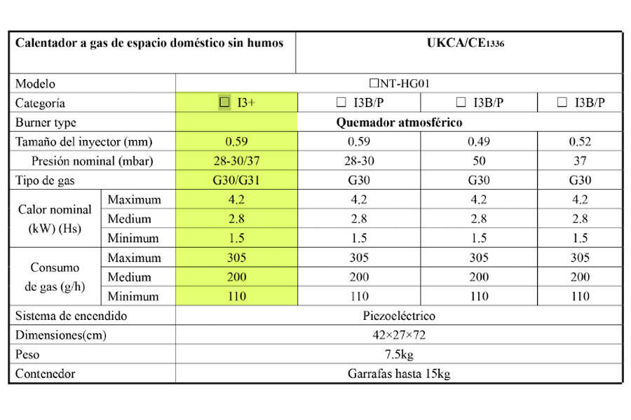 Tipo de GAS: Propano / Butano / LPG